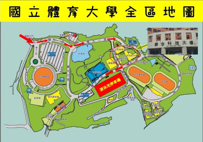 *報到處位於國立體育大學 綜合科技大樓(桃園市龜山區文化一路250號)